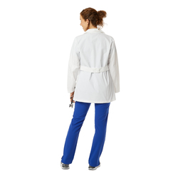 Spectrum’s UltraSmart Ladies 34” Unisex Antimicrobial Lab Coat is aptly named. This four-button lab coat is styled for ladies and smartly made with a patented Silvadur™ antimicrobial finish to provide odor protection and inhibit the growth of harmful pathogens and increase the lifespan and durability of the garment. Two flattering shoulder darts create a feminine fit and a back two-button swing belt can be adjusted for best fit. One left chest patch pocket and three lower patch pockets provide ample space for holding important items; while two side vents allow quick, easy access to inner garments. At 34”, this lab coat hits most ladies just above the knee and ideal for Residents and non-attending fellows—or anyone looking for a mid-length coat. This UltraSmart lab coat is made of ultra-brushed, super soft 65/35 poly cotton and is available blank or custom decorated with embroidery or heat transfer.