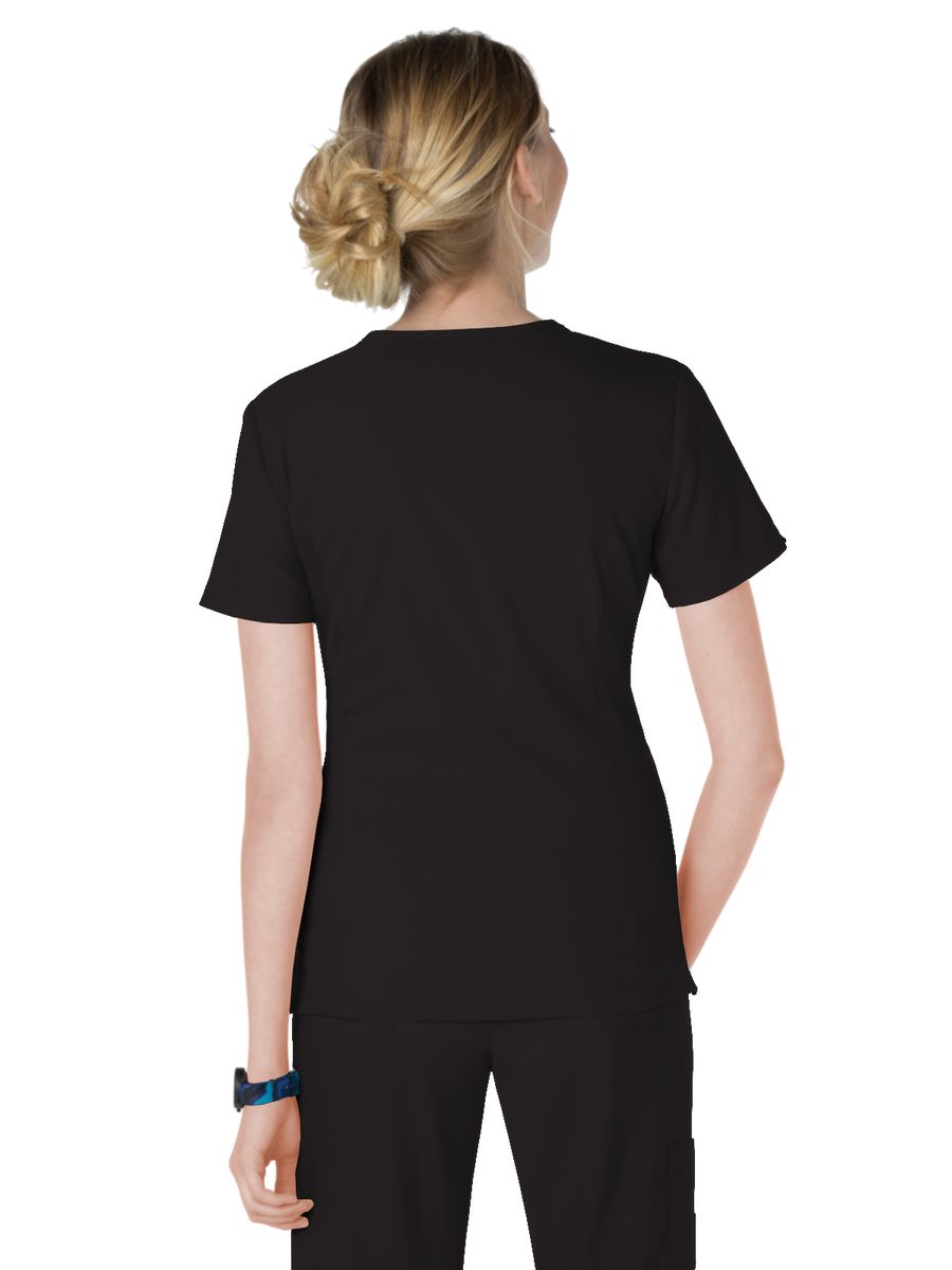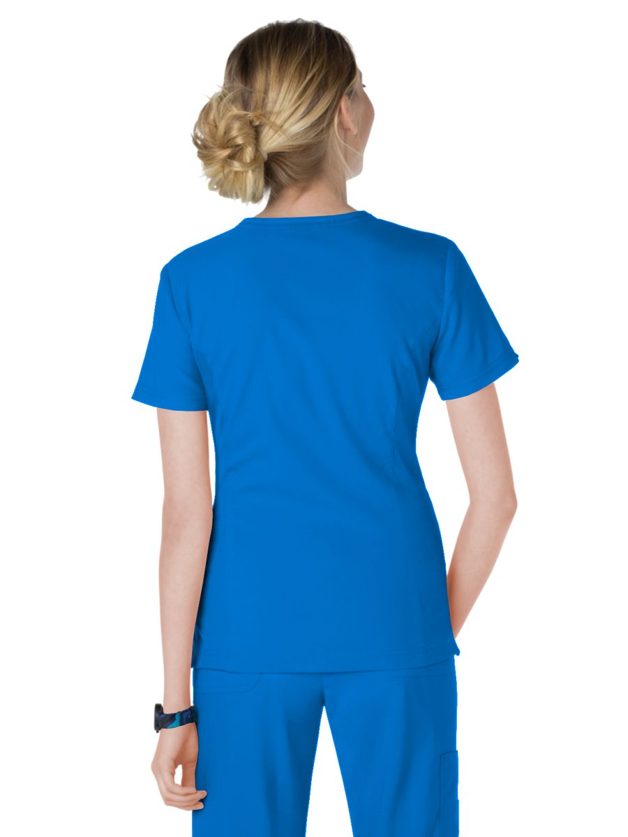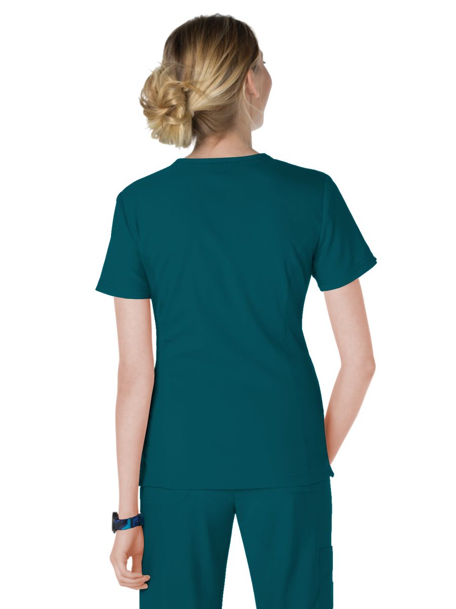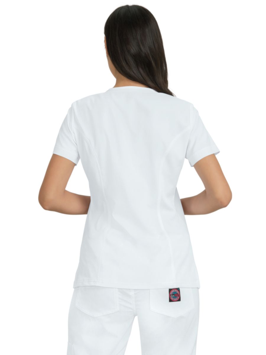 Stay cool, comfortable, and stylish during long shifts with this lightweight, slim-fitting athletic scrub top. The contemporary fit and performance stretch fabric offer a flattering silhouette and unrestricted movement, while the breathable, moisture-wicking material keeps you dry and comfortable all day long. The unique double-zipper at the neck provides customizable ventilation and a touch of sporty style. With four front pockets, you'll have plenty of space for your essentials. Rib knit trim on the sides and side slits add comfort and a touch of flair, while the 27" length (size Small) ensures a flattering fit. Easy wash-and-wear fabric makes this top a practical and stylish choice for any healthcare professional.